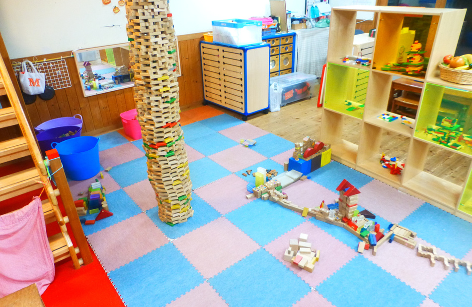 どのクラスも遊ぶ・寝る・食べるスペースが分かれています。そのことにより子どもの活動が強制的に中断させられることがなくなります。きりのいいところまでできることによって、子どもは集中力を身につけ、また、自分で納得して自分の興味に区切りをつけ、次の行動に移るという「自律」を身につけることができます。