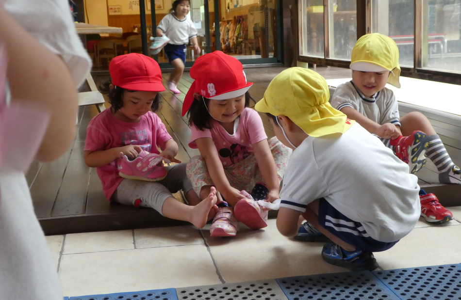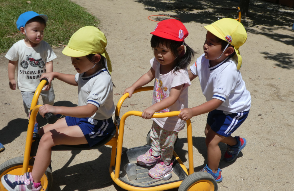 大事なのは「子どもと子ども」の関係。子どもは子ども同士の関わりの中で発達していきます。保育者が何かを教えるよりも、ほかの子どもを見て、まねて、教え合い、学び合う等の子ども同士の触れ合いが、子どもの脳(特に前頭葉)を活性化させ、発達を大きく促すのだということもわかってきました。